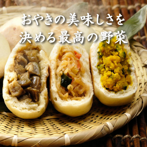 「土に力がないといい野菜ができない」とある生産者さんの言葉です。当店は、野菜の生産者さんとの出会いをとても大事にしています。野菜そのものの美味しさを、おやきで手軽に、たっぷり味わっていただくために、いろんな野菜をいろんな調理法でお惣菜にして、それを美味しいおやきの皮でつつんで、ふっくらと焼き上げています。