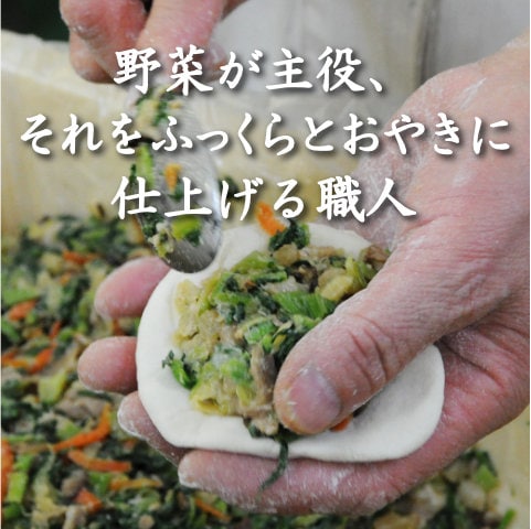 おやきの美味しさの最大の調味料は「野菜そのもの」。うまいおやきを作るには、美味しい野菜と、おやき職人、それだけで決まります!当店では、美味しい野菜との出会いにとても時間と手間暇をかけています。農家さん、素敵な畑、生産者さんとの出会いが美味しいおやきを作る最高の材料だからです。