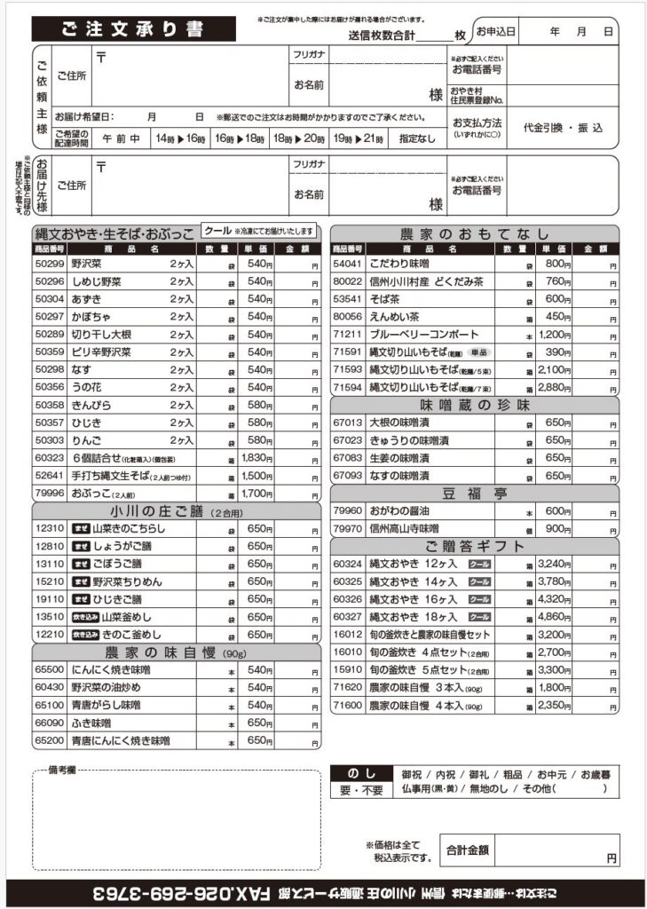 FAXでのご注文