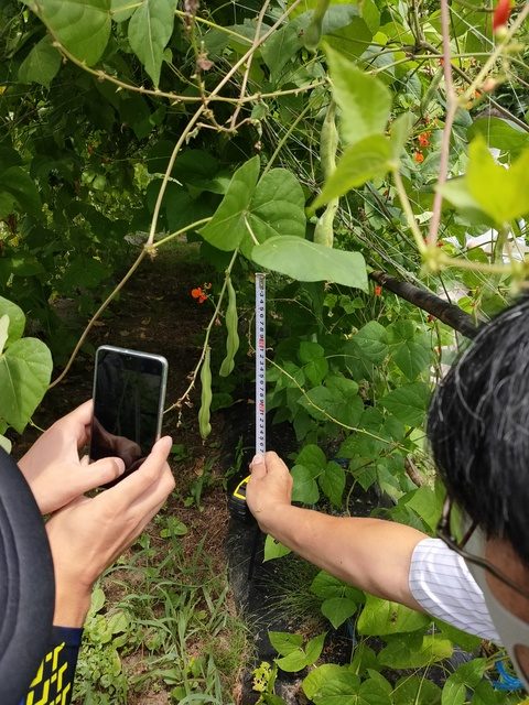 そして、最初に咲いた花はつぼみとなり、できたばかりのサヤがぶら下がっています。
