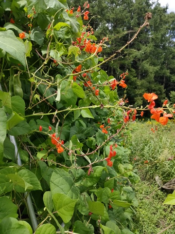 おやき村近くのほ場から・・・花豆の花って赤くて小さくて♪