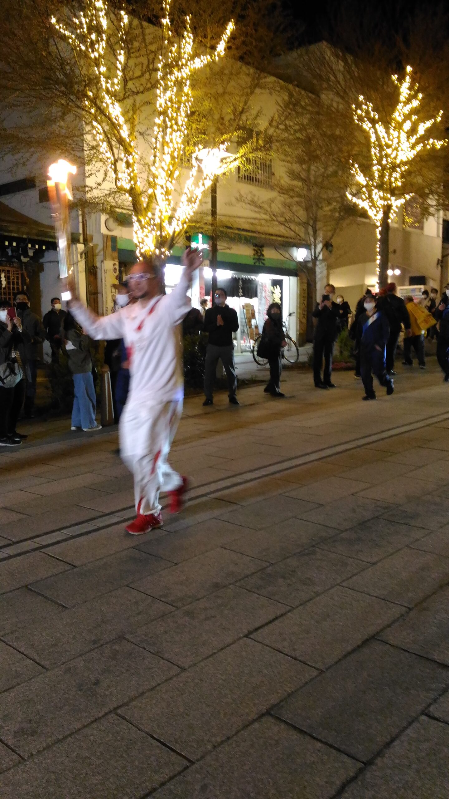 4月1日、長野市でオリンピックの聖火リレーが行われました。善光寺を19:08に出発した聖火リレーは中央通り “ おやき村大門店 “ 前を通過。営業時間外でしたがお店の灯りMAXで応援しました。コロナ禍で複雑な心境ではありましたが、光り輝くスポンサーカーや笑顔のランナーを見ていると長野オリンピックの時の元気な街を思い出し、東京オリンピックの成功を願いました。