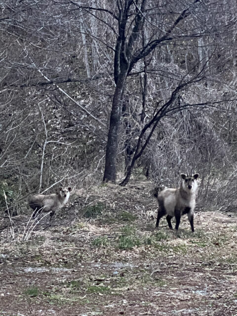 会社の通勤途中で遂にあの「シシガミサマ」ではなくて、ニホンカモシカを目撃しました!しかもカップル❓かは判りませんが、二頭仲良く草を食んでいるところに遭遇でき、ホッと心が安らぎました。