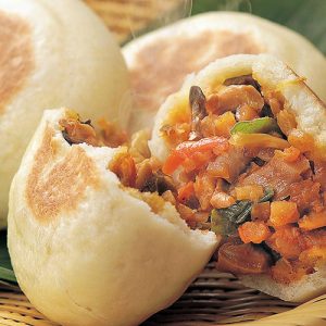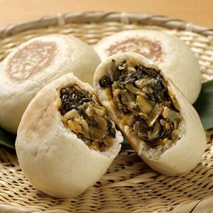 冬の季節限定のピリ辛野沢菜のおやきが好評をいただいております。