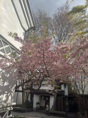パティオ大門の中庭にある、桜が、3月半ばより満開に咲きました。