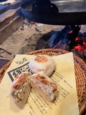 囲炉裏の焼きおやきで「卯の花」始まりました‼