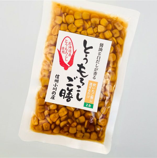 北海道産のとうもろこしを使用し、醤油の香りと白だしの味わいが素材の旨みを引き立たせた味わい深い混ぜご飯の素です。