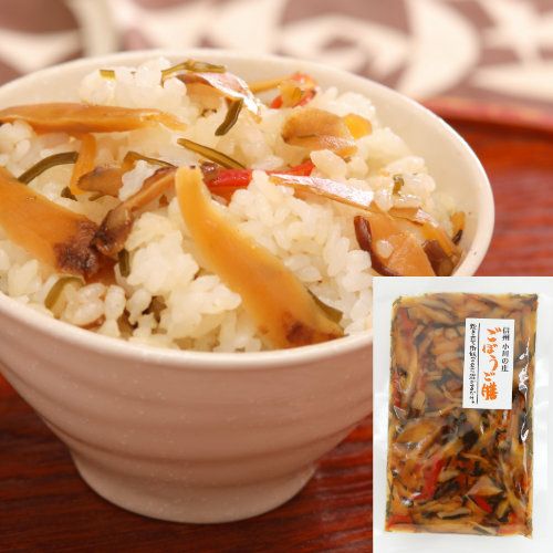 ごぼう(国内産)、こんにゃく、昆布、人参、竹の子、椎茸、しょうゆ、かつおエキス、もろみ調味料、酵母エキス、食塩、ぶどう糖果糖液糖/酸味料、酸化防止剤(ビタミンC)、水酸化カルシウム |