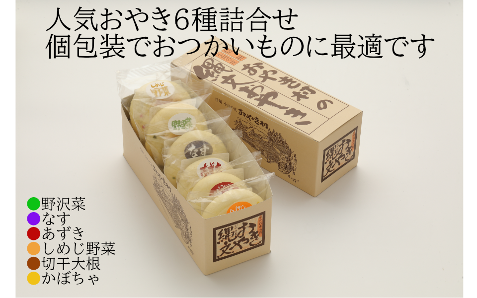 個包装でちょっとしたおつかいものに最適。●人気の6種(野沢菜、しめじ野菜、あずき、かぼちゃ、切り干し大根、なす 各1個)の詰め合わせです。 ●内容量/6種×1個入●賞味期限/冷凍庫で6カ月、解凍後冷蔵で2日