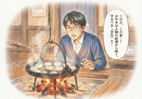 囲炉裏の火で焼かれるおやきを改めて見た時、その原始的な調理方法、薪や炭がはぜる音、香りに猛烈に感動したんです。「これは人類の起源から続く、守るべき文化だ」と。