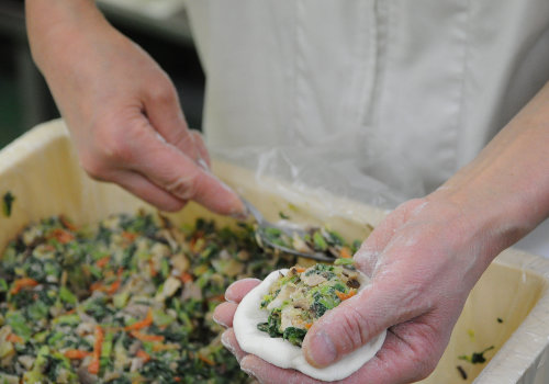 具材を作ってすぐに包むのではなく、一晩置いて味を馴染ませ、翌日に包んで蒸し上げる。この「熟成」の工程があるからこそ、具材の旨味が生地にじゅわっと染み込み、小川の庄ならではの深みのある味になるんです。野菜の良さを最大限に引き出した、自慢の味を楽しんでいただきたいです。