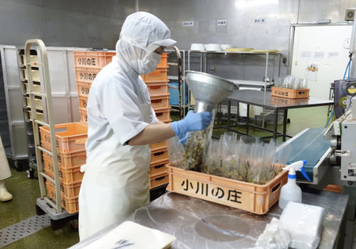 信州・小川村に根ざし、1986年の創業以来「地域の手で地域を元気に」を合言葉に、おやきをはじめ漬物・まぜご飯の素、お惣菜、直営店・体験・通信販売まで、郷土の味に磨きをかけて商品を生み出す会社です。畑で育て、工房でつくり、全国・海外へお届けする―一次・二次・三次産業をつなぎ、村の暮らしと仕事を循環させています。