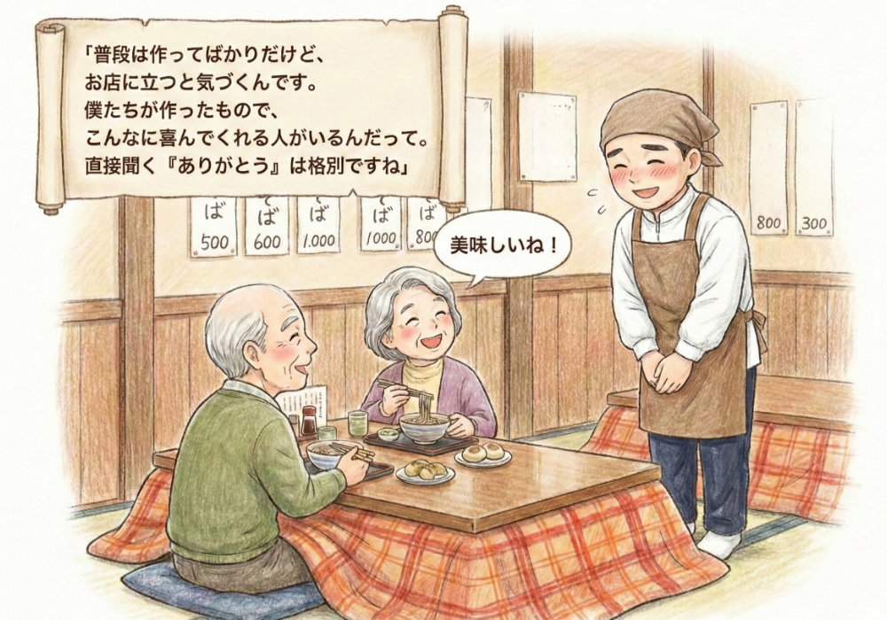 「美味しかった」という声を聞いて、また来ていただけることを願いながら、一人ひとりのお客様を大切にお話をするようにしています。