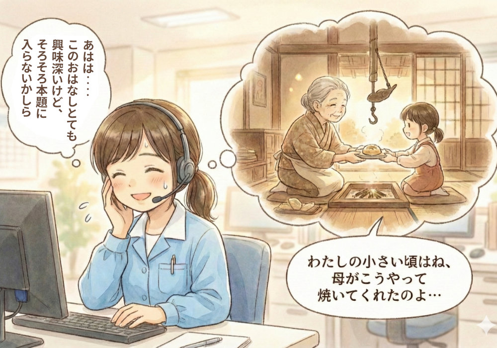 かい合って食材の話から始まり昔話しを聴くように心がけています。